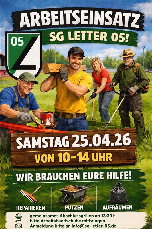 der Frühling steht vor der Tür und damit auch die Zeit für unseren diesjährigen Frühjahrsputz / Arbeitseinsatz auf dem Vereinsgelände. Um unser Leinestadion wieder auf Vordermann zu bringen und für die Sommermonate vorzubereiten, laden wir euch herzlich dazu ein, uns bei dieser wichtigen Aufgabe zu unterstützen.