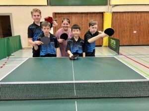 Nach dem 1:1 in den Doppeln verlief es zunächst ausgeglichen: Das untere Paarkreuz mit Kiano und Paul hatte einen superstarken Tag und gewann beide Einzel, so dass die beiden Niederlagen oben ausgeglichen waren. Dann konnte Aron die Nummer 2 aus Weetzen besiegen und es stand 4:4.