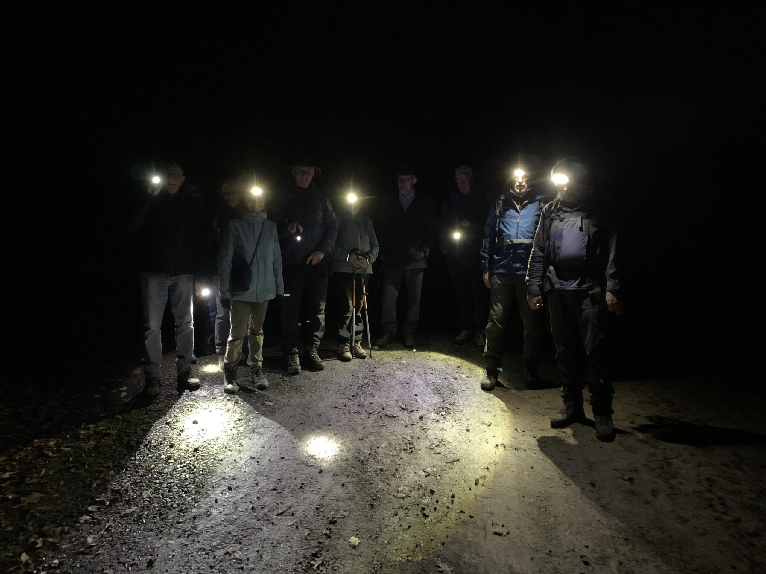 Irgendwann musste es ja weitergehen, dachte Schefczyk, also brach man auf, um den Rückweg anzutreten. Es war jetzt aber stockduster im Wald und die Leuchten mussten eingeschaltet werden. Ein neues Erlebnis hielt Einkehr für viele ungewohnt. Andere Sinnesorgane wie Tast- und Hörsinn wurden nun etwas mehr beansprucht. Ein völlig neues Walderlebnis fand statt. In der Ferne leuchteten die Städte und man konnte die Lichtverschmutzung deutlich wahrnehmen.